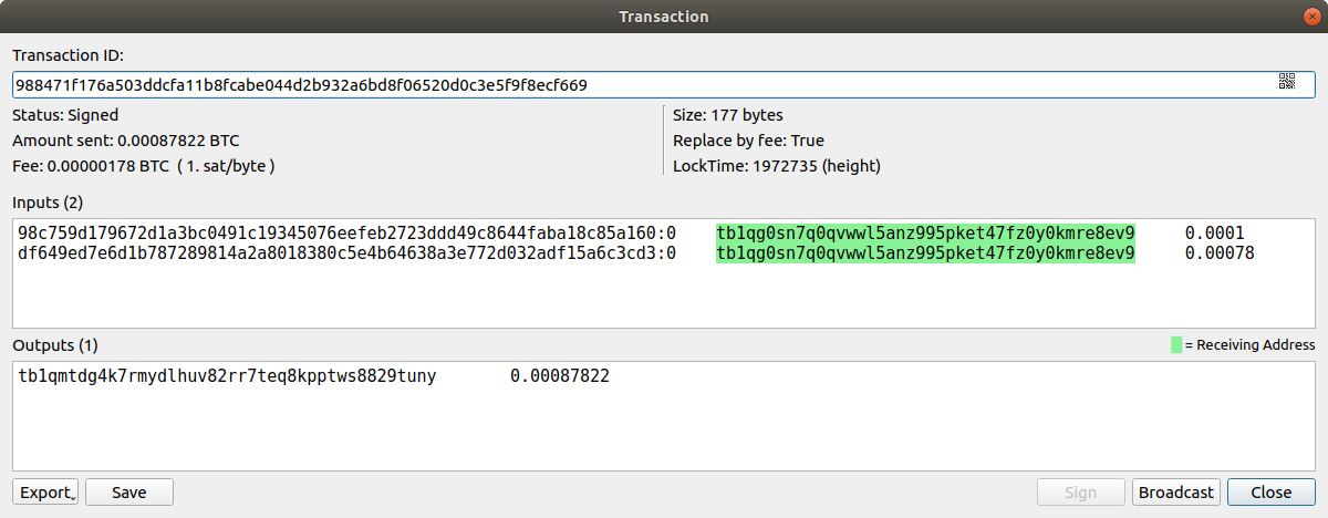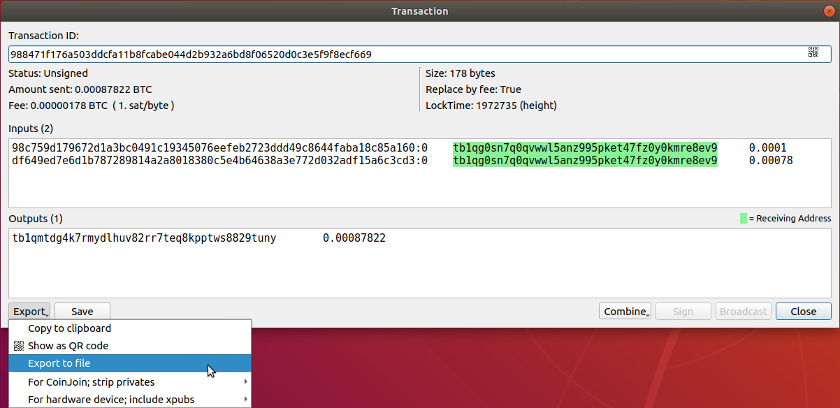 - Save the signed transaction to your USB stick