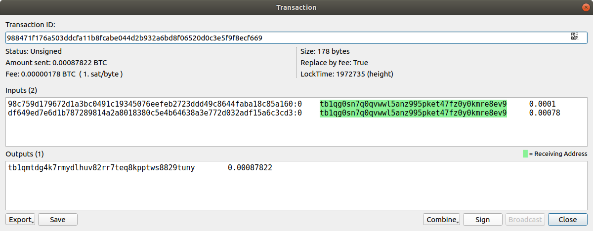 - Load and sign the transaction on your offline laptop